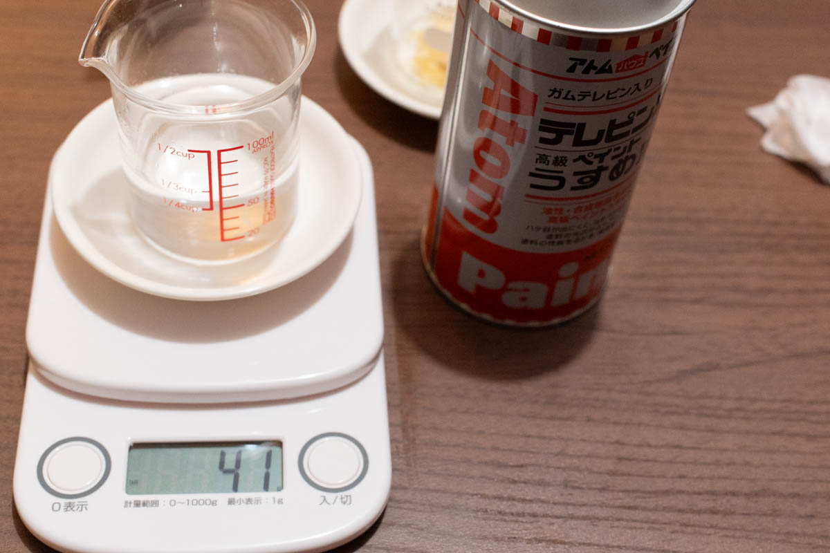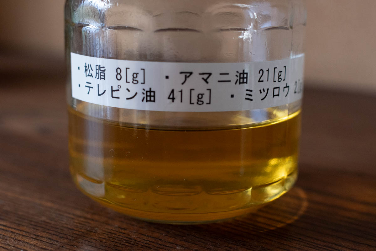 今回は木工用のテスト品で、テレピン油も混ぜてしまっているので、