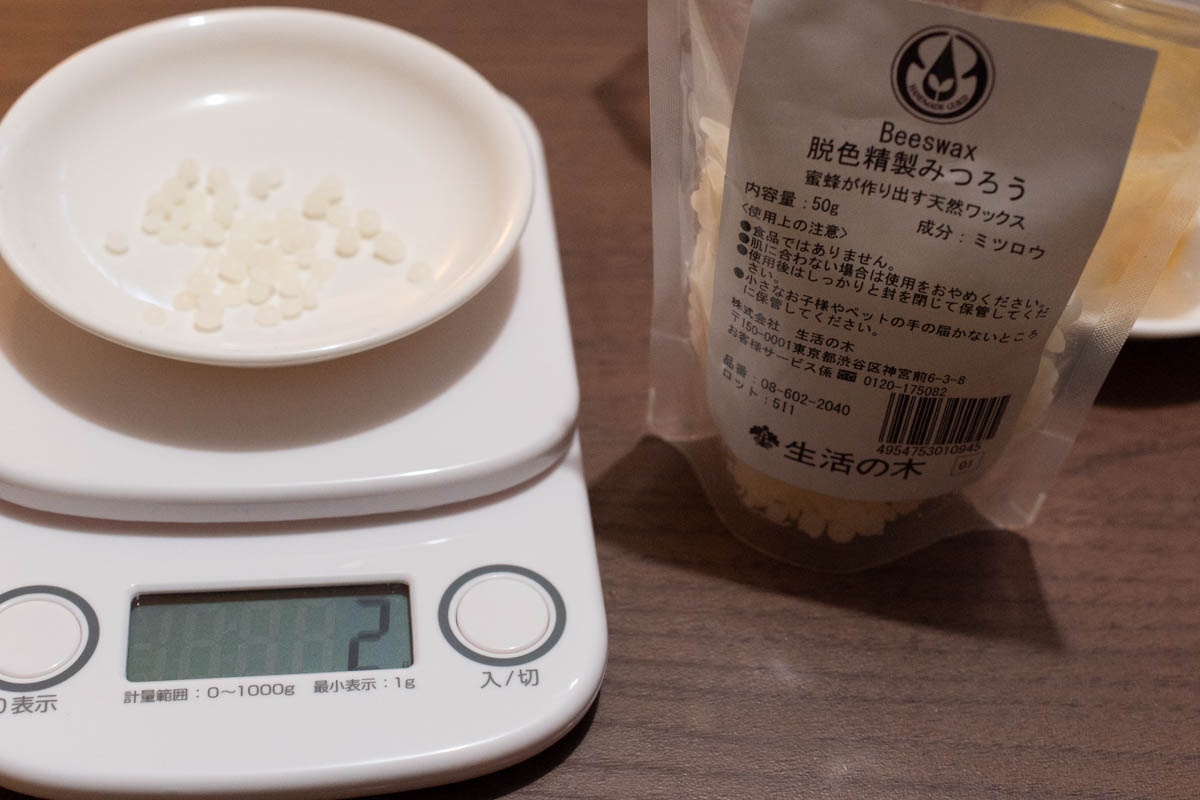 ニスを剥がしやすくするためのビーズワックスも入れておきます。