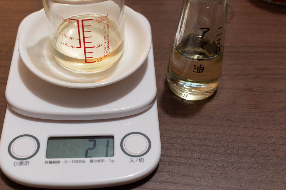 アマニ油のいいところはスーパーの油コーナーで50[g]の小瓶が300円ぐらいで買えるところです。