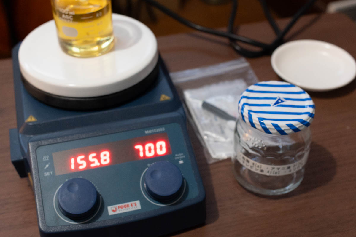 参考にした記事類はコンロで加熱していましたが、スターラーがあれば火を使わずに済むのと