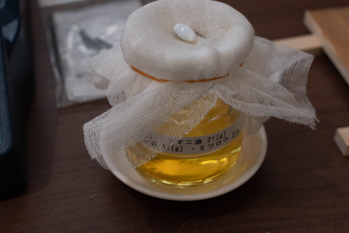 あと、アマニ油とえごま油は特に樹脂を溶かさなくても、柿渋とミツロウで下処理した